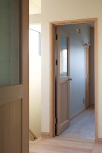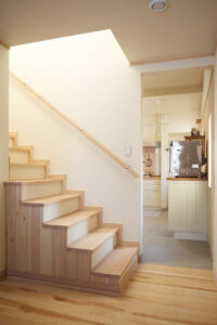 また、1階の階段下に洗面・トイレ等の水回りを設け、2階で過ごすお子様が夜間でも利用しやすいようにしています。